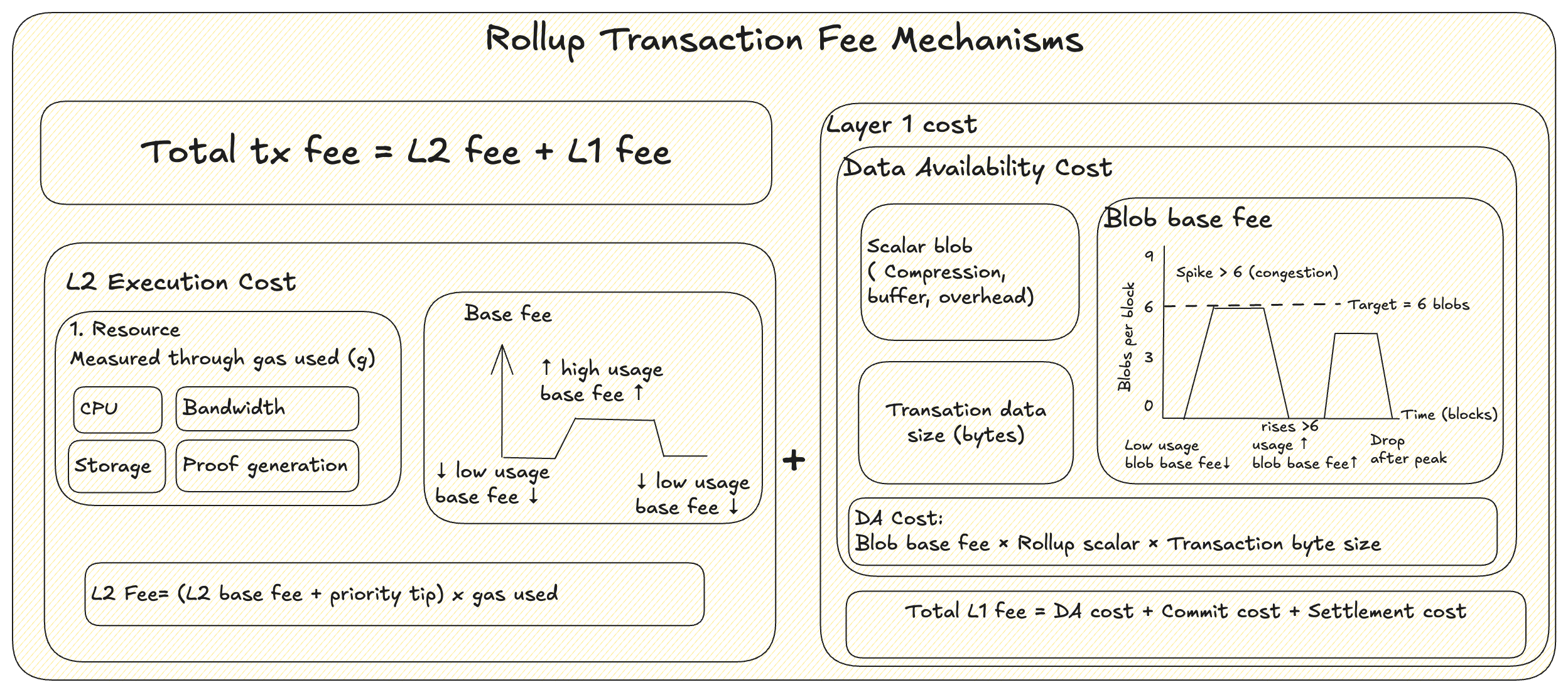On Ethereum L1, there’s a single gas price that reflects all the costs involved in executing and storing a transaction. But for rollups, costs are spread across multiple layers and resources, each with its own pricing dynamics. This makes fee design more complicated, and sometimes, exploitable.