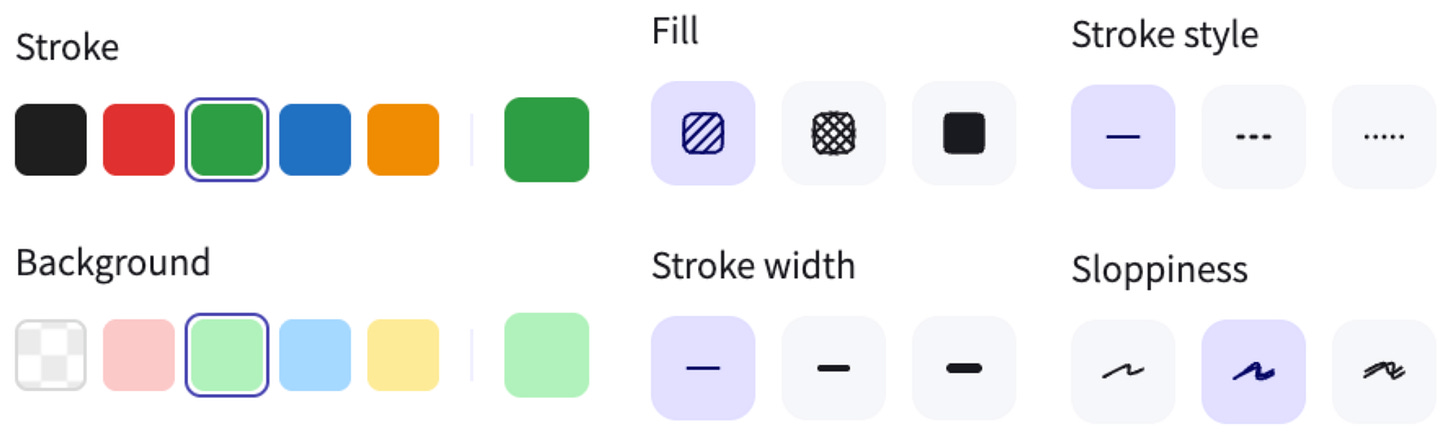 Then, there are a bunch of other parameters you can experiment with: stroke width, stroke style, sloppiness, and edges. We're not going to describe each of them separately.