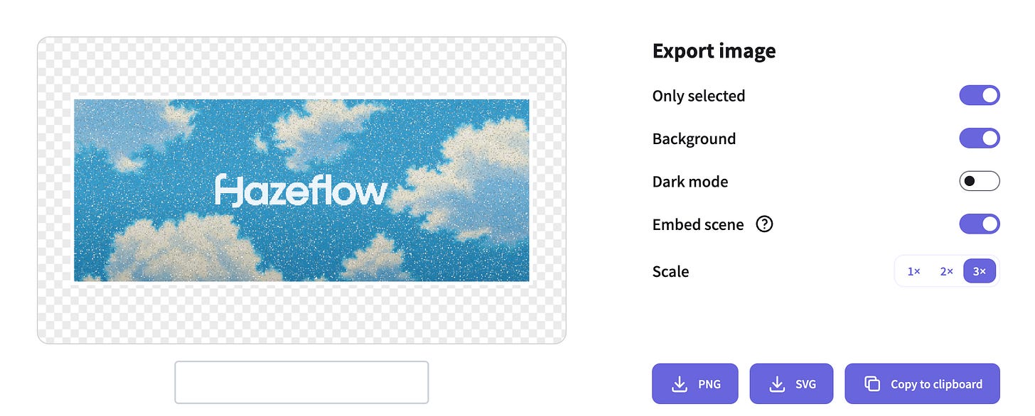 To export only a portion of the canvas, first select the area you want to export. Then, click the top-left button and choose "Export image".