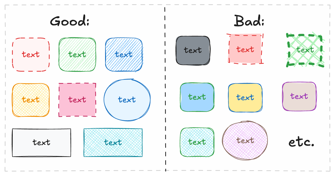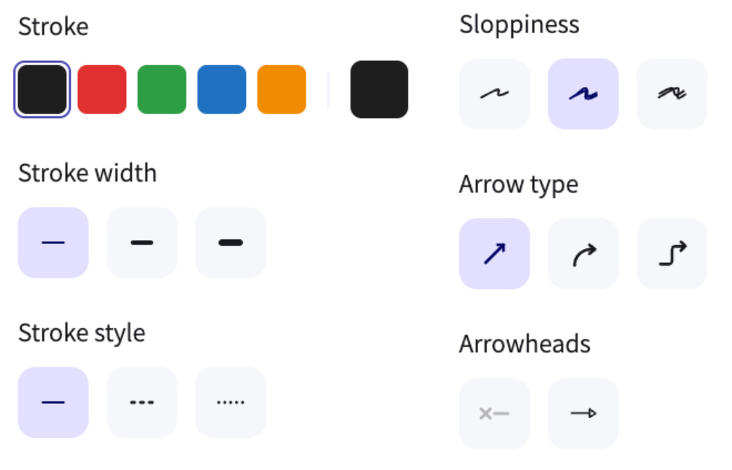 Stroke: Try to use the same color that most of your diagram contains, although we usually stick with black (if your canvas is white) or white (if your canvas is black).