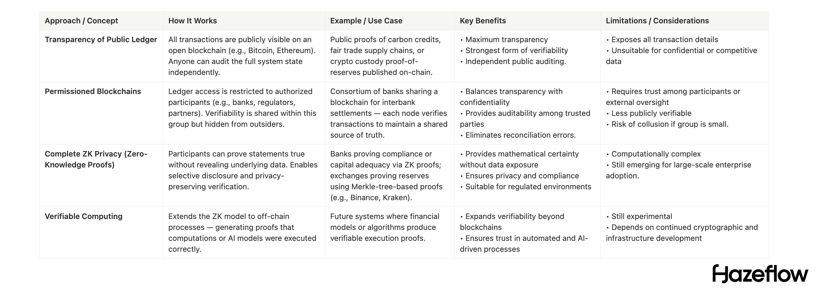 Here, verifiability is shared among an authorized group rather than the whole public. The ledger is only accessible to participants like the institution and its partners, regulators, and so on. This approach is aimed to balance transparency with confidentiality. All members can verify the data within the network, but the outside world cannot see the data.