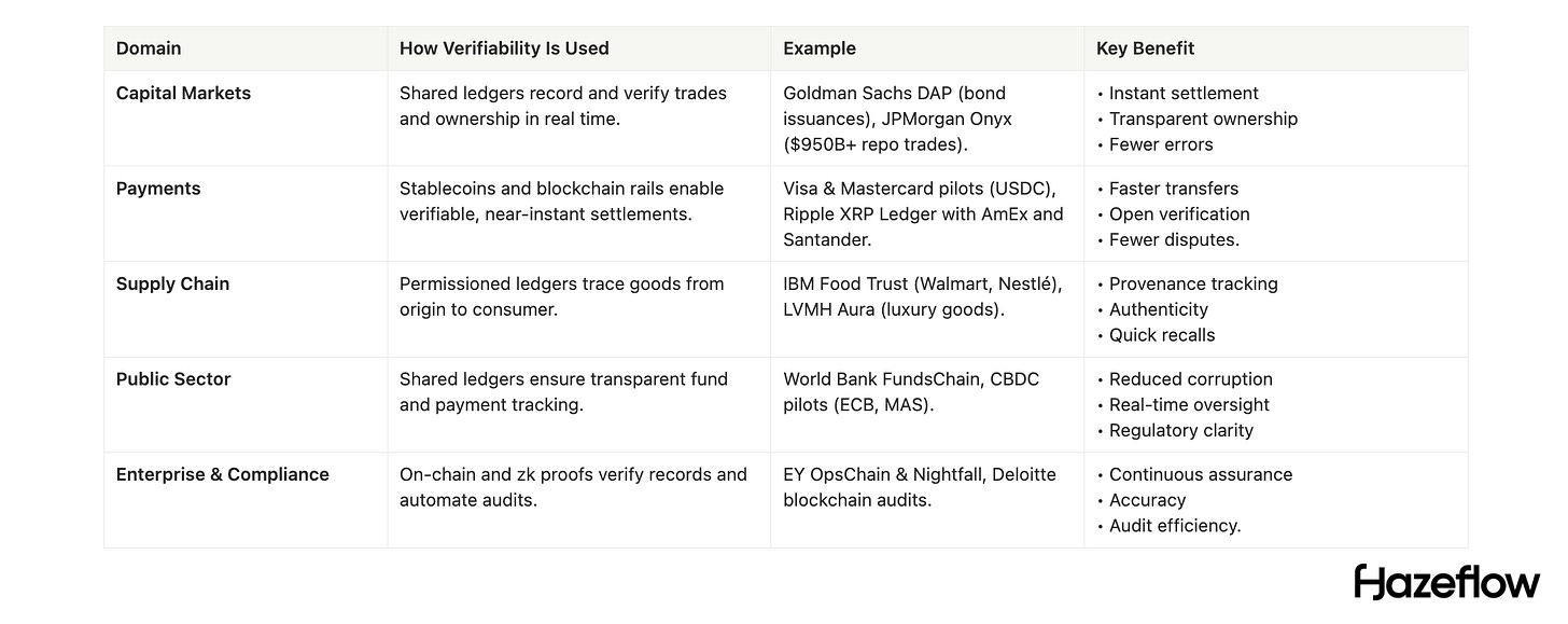 Each of these examples is early, but they indicate a trend: institutions are slowly starting to adopt verifiability where it adds clear value. They often begin in areas where trust issues or inefficiencies are most glaring, like finance, supply chains, and audits, and run controlled pilots.