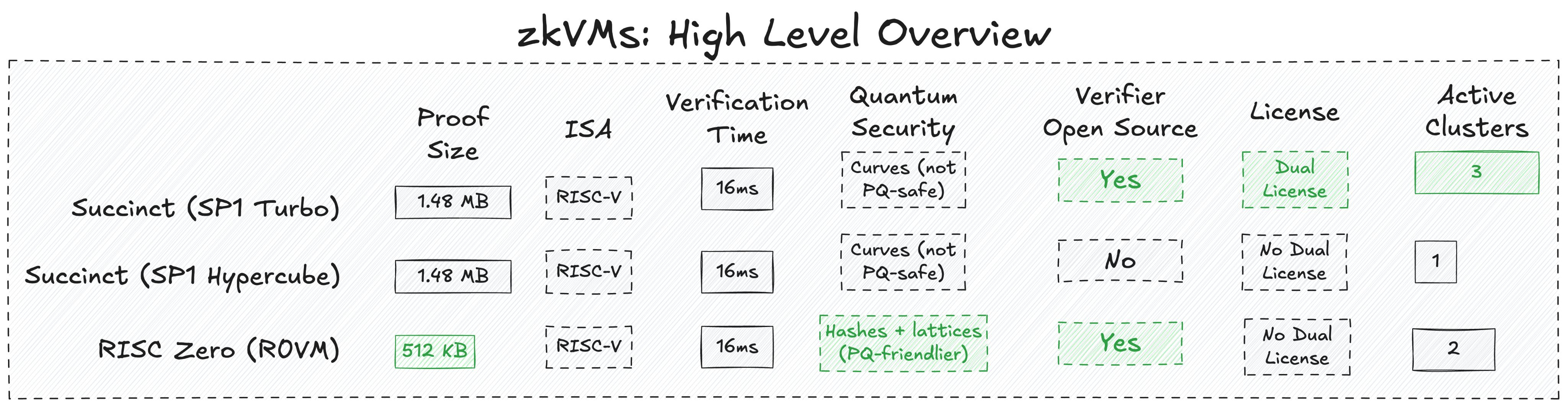 R0VM: smaller proofs + quantum safety, but more expensive.