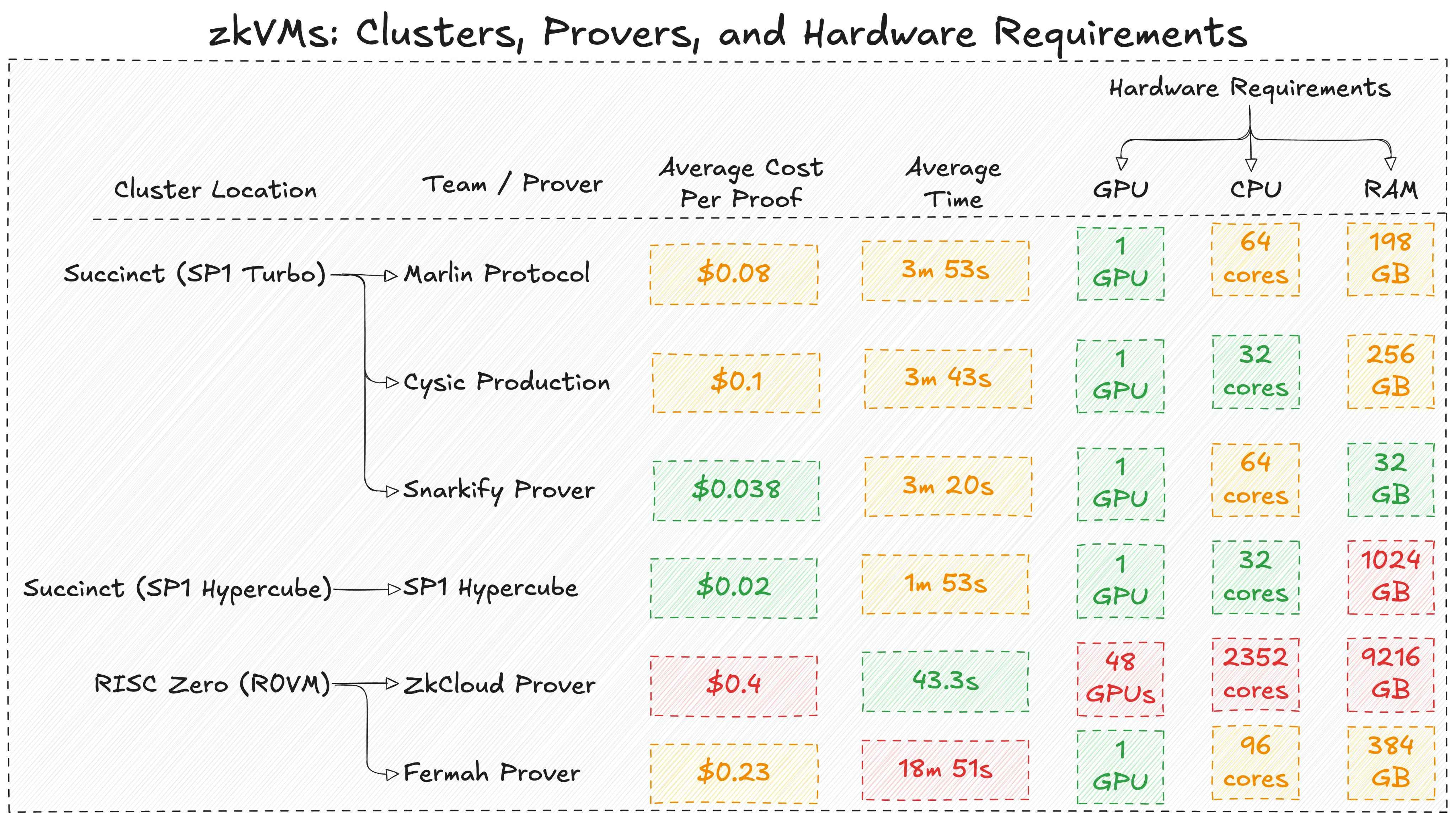 R0VM shines in proof size and quantum resistance. ZkCloud’s cluster can deliver sub-minute proofs, but at very high infra costs.
