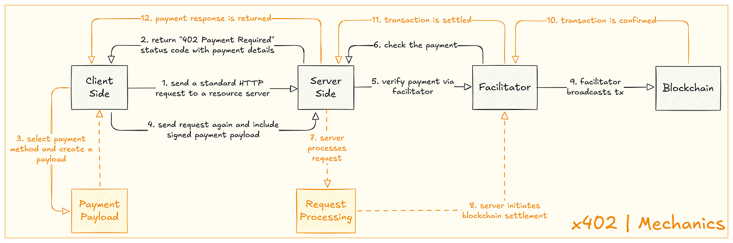 Coinbase’s progress on the recent Agent-to-Agent infrastructure has led to x402, which essentially is a upgraded HTTP-402 standard so agents can pay in stablecoins over plain HTTP: no accounts, no OAuth, instant settlement per request.